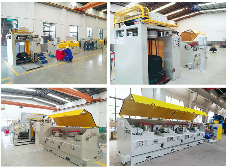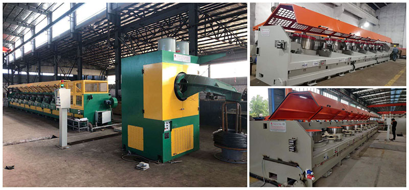 Straight line wire drawing machine unit that Our company designed and manufactured after improving, possess a forwardlook ing inc luding relevant domestic leading technology. Also possess leading level in the drawing wire capstan hardening technology processing and cooling (air, water) systems , The setting speed of machine unit and stress sensor have Multiple projects signal sampling, Our goal is to get real intelligence. Straight line wire drawing machine unit adopts horizontal pay-off stand when drawing high carbon spring steel wire ,adopts overhead pay-off machine when drawing low carbon s teel wire,adopts electric rotating payoff when drawing bearing steel wire. Take-up wire methods will include (drum take-up,Coil take-up, Spool take-up, Inverted vertical take-up), Straight line wire drawing machine can achieve high total compression ratio, more drafts, Low part of the compression ratio and fast running speed. The cooling system of middle capstan, die-box tuner device, lubrication supplies and die-box design, Line pressing roller device, Outlet wire straightening device are all getting from production process ,So it has strong practicality.The main functions Of straight line wire drawing machine : AC frequency conversion technology( programmable control system), screen display, and it’s easy to operate with high automation level.Drum adopts air cooling and water cooling. Die box adopts direct water cooling because of good cooling effect. We adopts first grade strong narrow v-belt and hardened reducer because of high transmission efficiency at transmission part . and we adopts the design with fully enclosed cover device because it will be safe when machine is running. Tuning is done by tension, drawing stability is good. Accurate meter counting, break wire alarm, positive and negative point jogging, fault information display, supports limited any match die, mold wear automatic tuning device, jump die device any removal .drum support different process, and other functions . Anyway! Looking behind if you choose us!